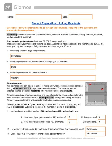 Read STUDENT EXPLORATION LIMITING REACTANTS GIZMO ANSWER KEY Reader